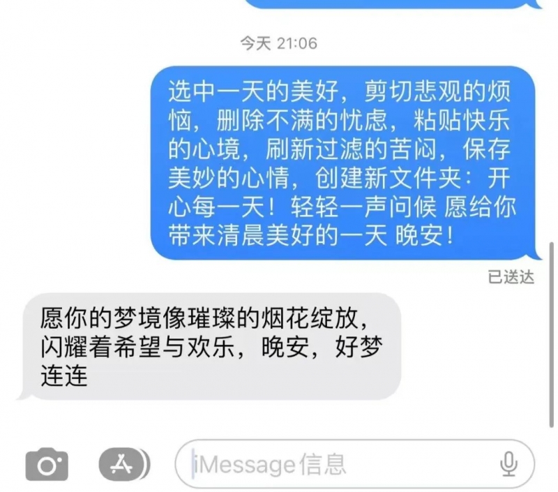 活动以发送“爱心短信”打卡的形式开展,通过手机短信为好友送上晚安祝福,未知身份不同地点的每个人都有意外的惊喜,在彼此的“爱心短信”中入眠。在这寒冬的漫漫长夜,让我们一同回顾爱心短信里的温情时刻吧!