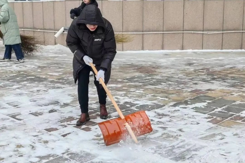 早晨八点半到达负责的区域后,老师带领同学们迅速加入到了积雪清扫的行动中。大家的目标是尽快扫雪除冰、畅通道路、消除隐患,确保师生安全和教育教学工作的正常进行。用众人之力,则无不胜也。在扫雪过程中,我系迅速清理积雪,开辟了一条条洋溢着暖暖温情的安全之路。