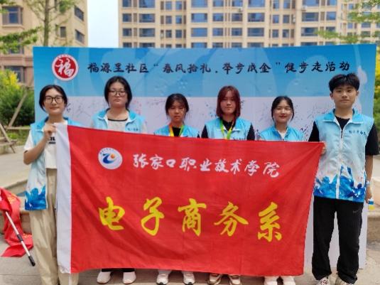 为全面提升学生的健康意识,更加注重自身身体素质,发觉自身潜能,促进学生的健康成长和全面发展,培养具有综合素质的优秀人才,电子商务系联合张家口市水务局与福源里社区共同举办“春风拾礼 举步成金 ”健步走活动。