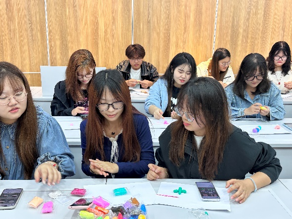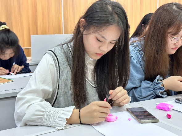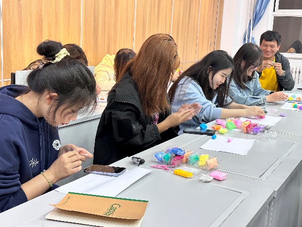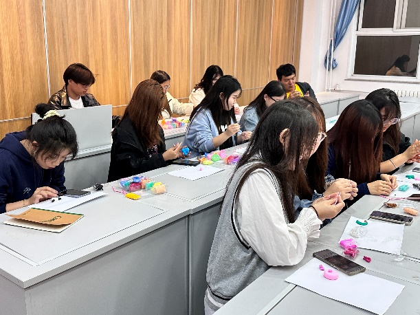 在活动筹备阶段,工作人员悉心准备了足量的粘土以及用于展示的空白 A4 纸,同时还准备了剪子和少量清水。同学们领取粘土材料及工具后,便开启了充满创意的创作征程。在创作过程中,同学们彼此之间相互讨论、通力协作,共同致力于完成作品。