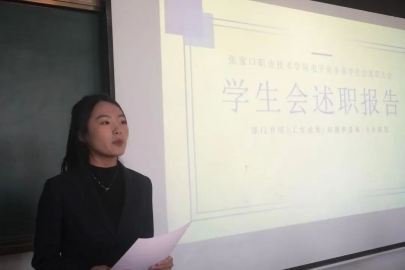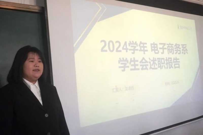 为深入总结本年度电子商务系团总支学生会各部门的工作成效,全面、客观地评估学生干部的履职情况,进一步提升团学组织的纪律作风和工作能力,通过系统回顾与总结,打造一支精干高效、纪律严明的团学干部队伍,为系部的科学、规范、 高质量发展提供坚实的人才支撑,1月3日电子商务系举行团总支学生会2024年度团学干部述职擂台赛。电子商务系副书记、副主任游月秋、副主任杨笑、团总支书记常敏、党建办公室主任任云云、系部教师葛瑾璐、田永娟、张子宁、白梅梅、刘佳雯担任评委。系部团总支学生会全体成员参加此次活动。