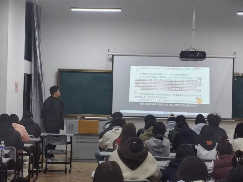 本次讲座中,从消费者权益保护的法律知识入手,讲解了消费者基本权利、常见消费陷阱及维权途径等内容,帮助同学们了解如何依法维护自身权益。在互动环节,就消费陷阱问题与同学们进行交流,现场气氛热烈,大家积极提问、踊跃发言。随后播放的视频,通过真实案例展示了消费维权的过程和要点,进一步加深了同学们对维权知识的理解。