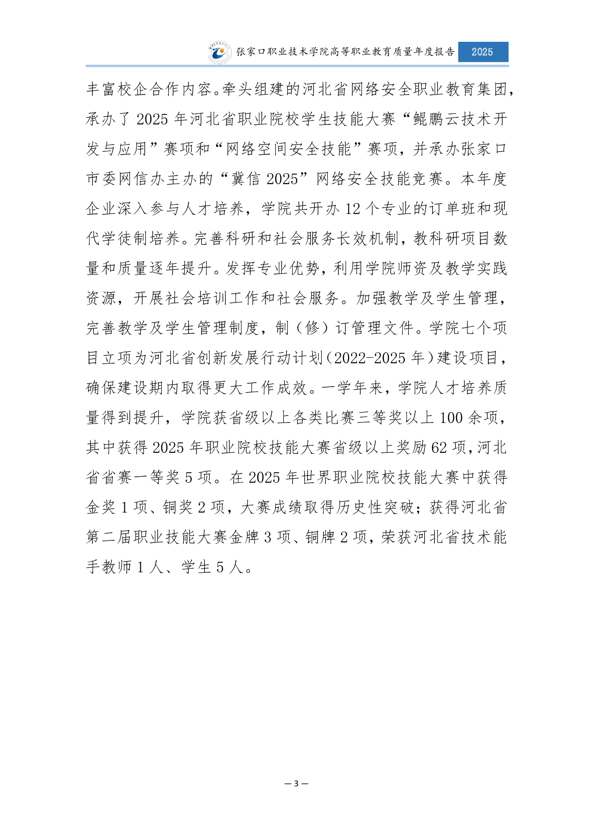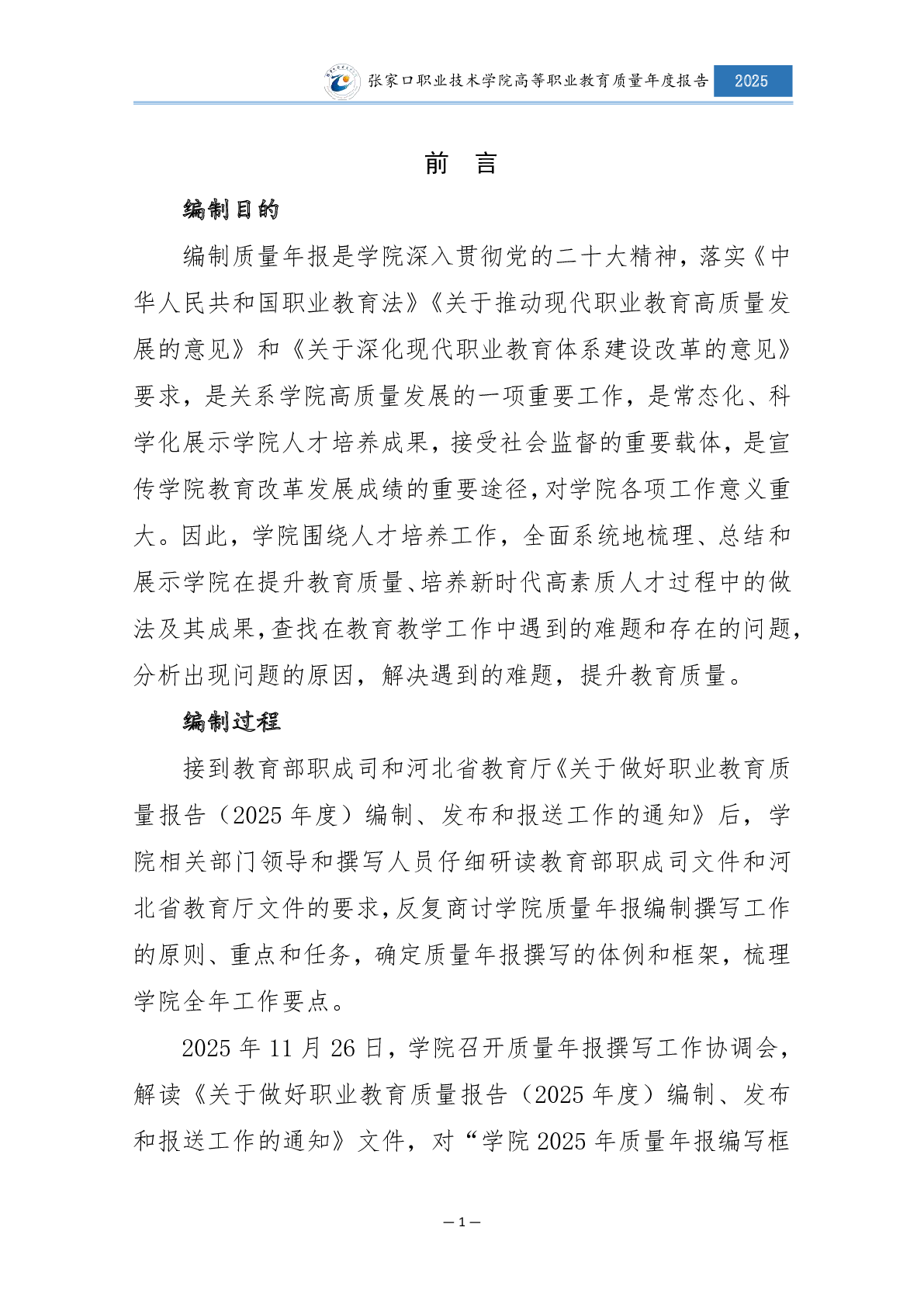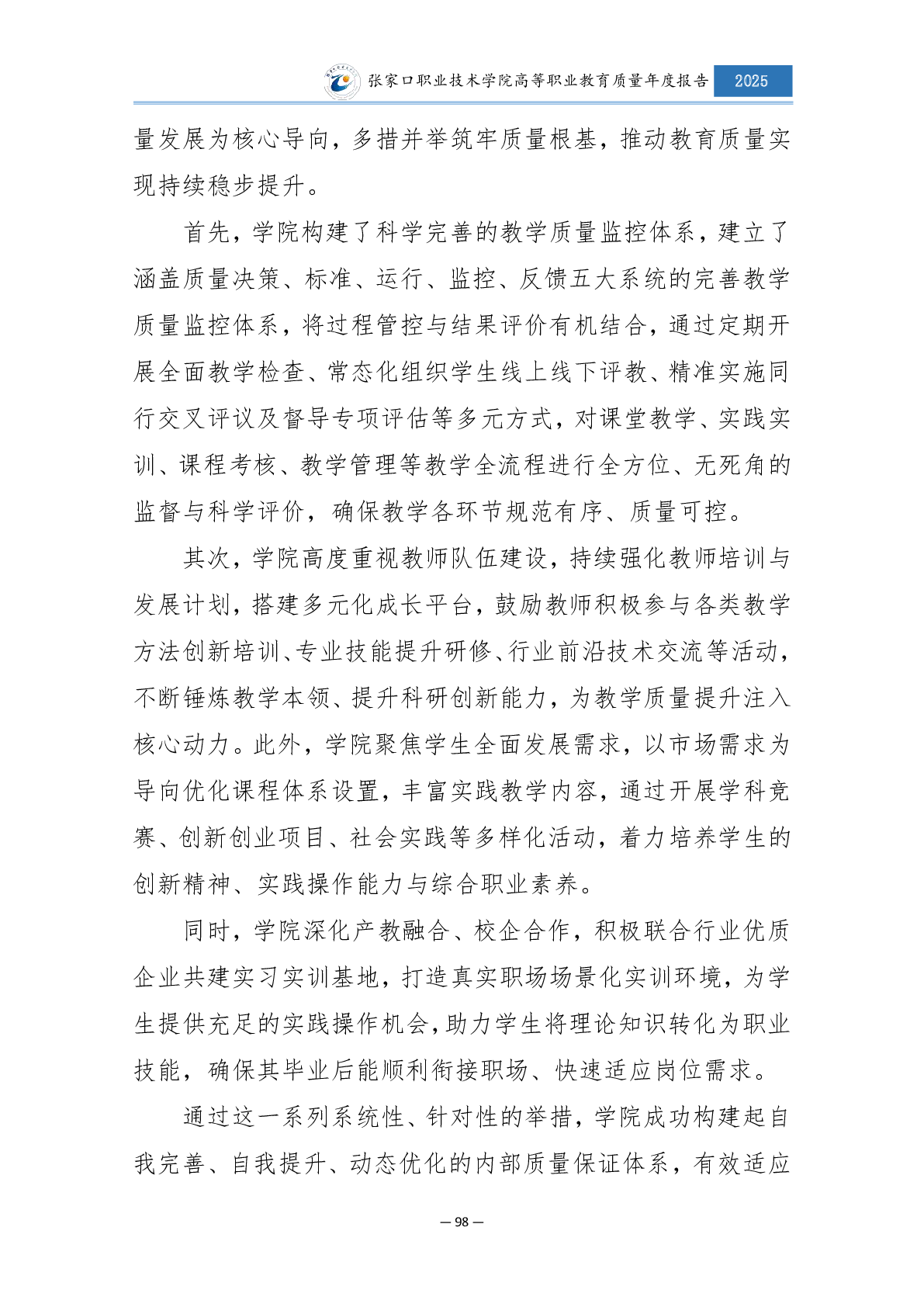 张家口职业技术学院高等职业教育质量年度报告(2025年度)