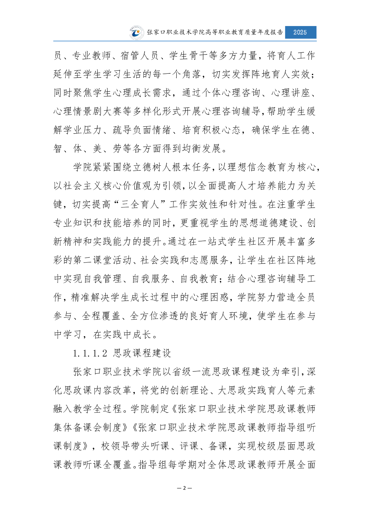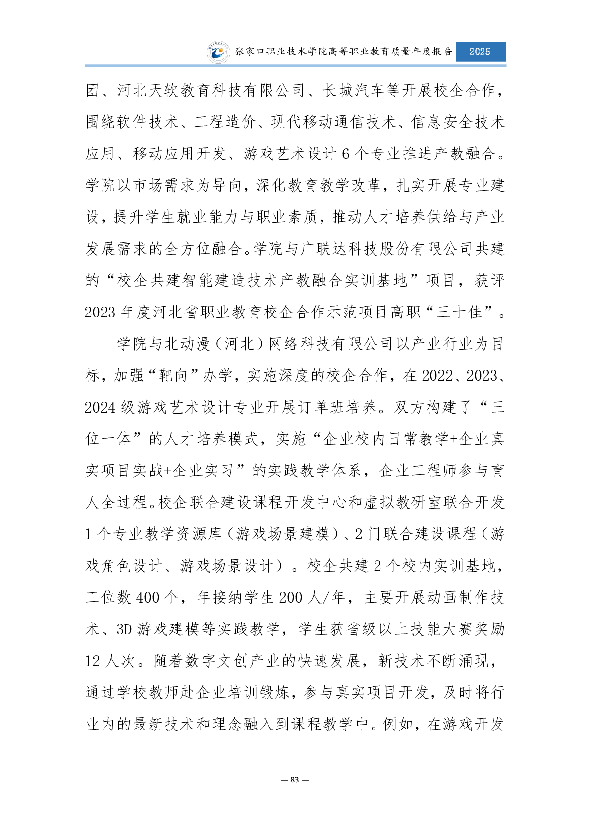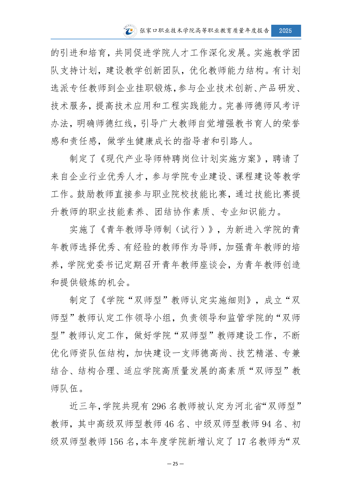张家口职业技术学院高等职业教育质量年度报告(2025年度)